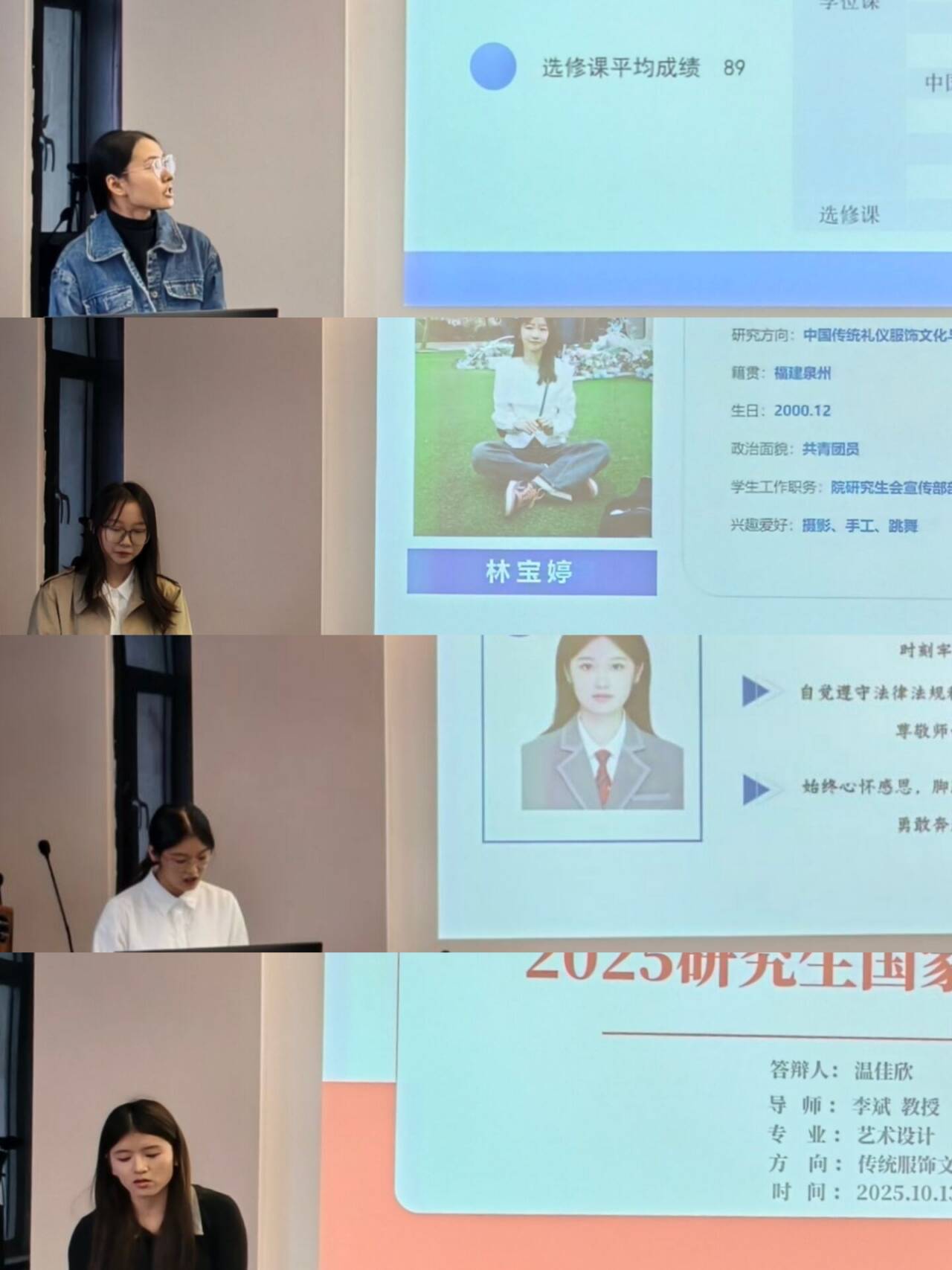 本次共有11名研究生进入答辩环节,竞争异常激烈。11名候选人按抽签顺序依次答辩,围绕思想品德、科学研究、课程学习、社会服务、实践创新进行5分钟汇报并现场提问。