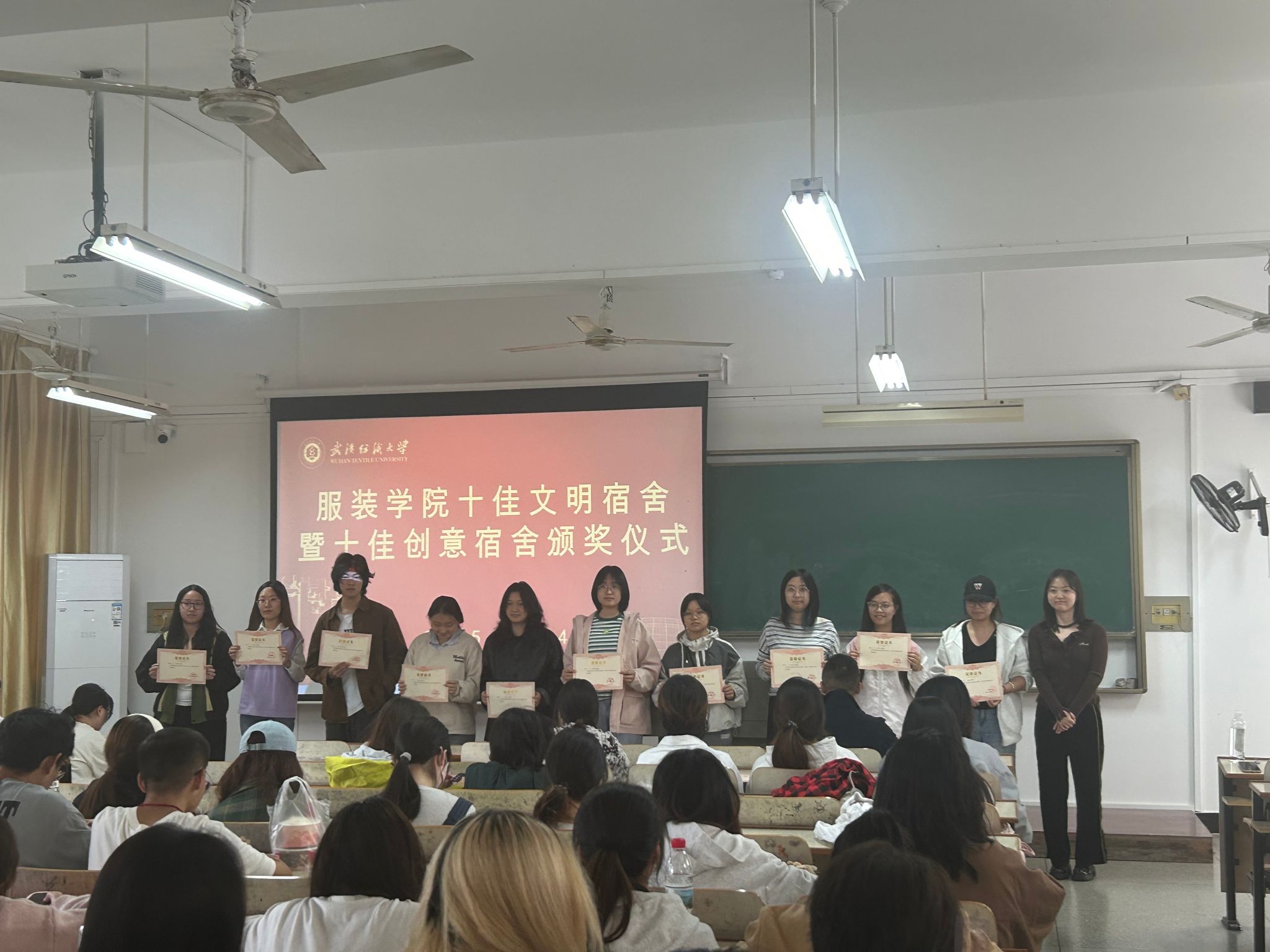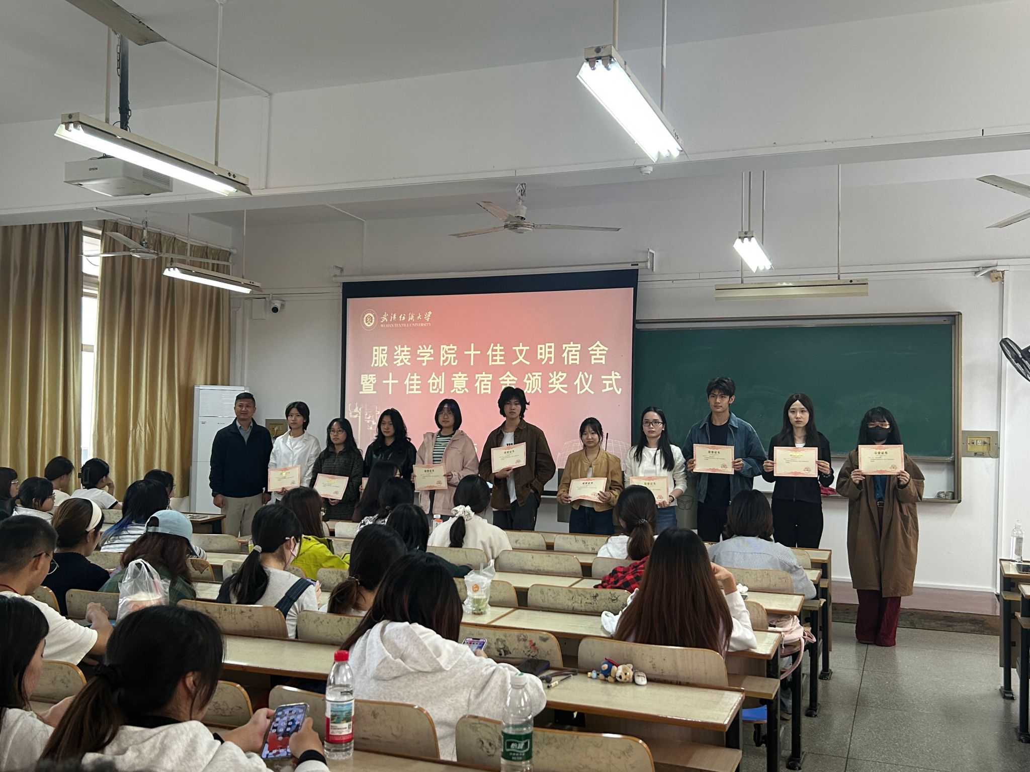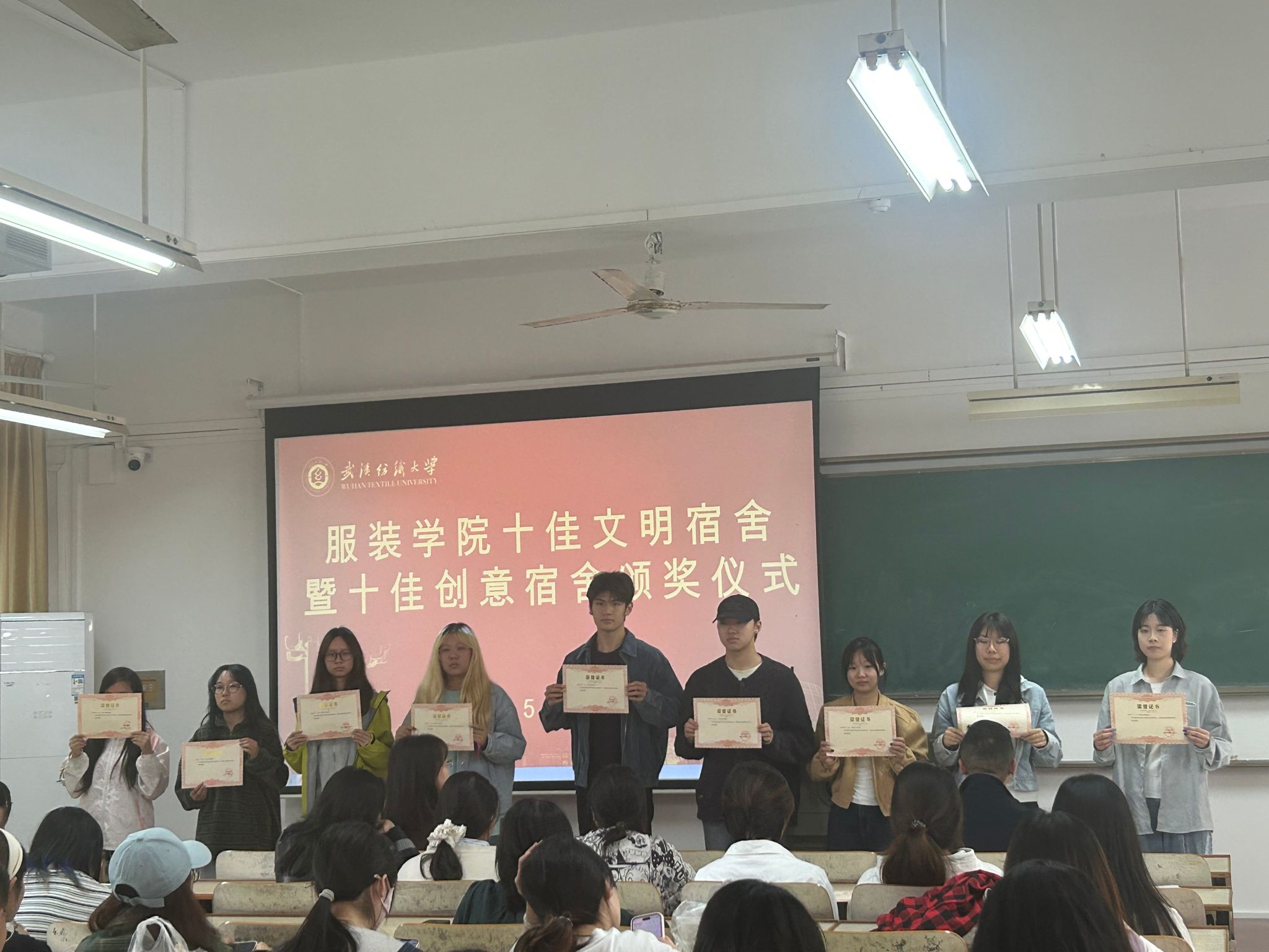 活动中,公司党委副书记郭泰辰、周曦老师和院员工会主席艾佳欣分别为十佳文明宿舍、十佳创意宿舍、先进创意宿舍颁发荣誉证书,并合影留念。