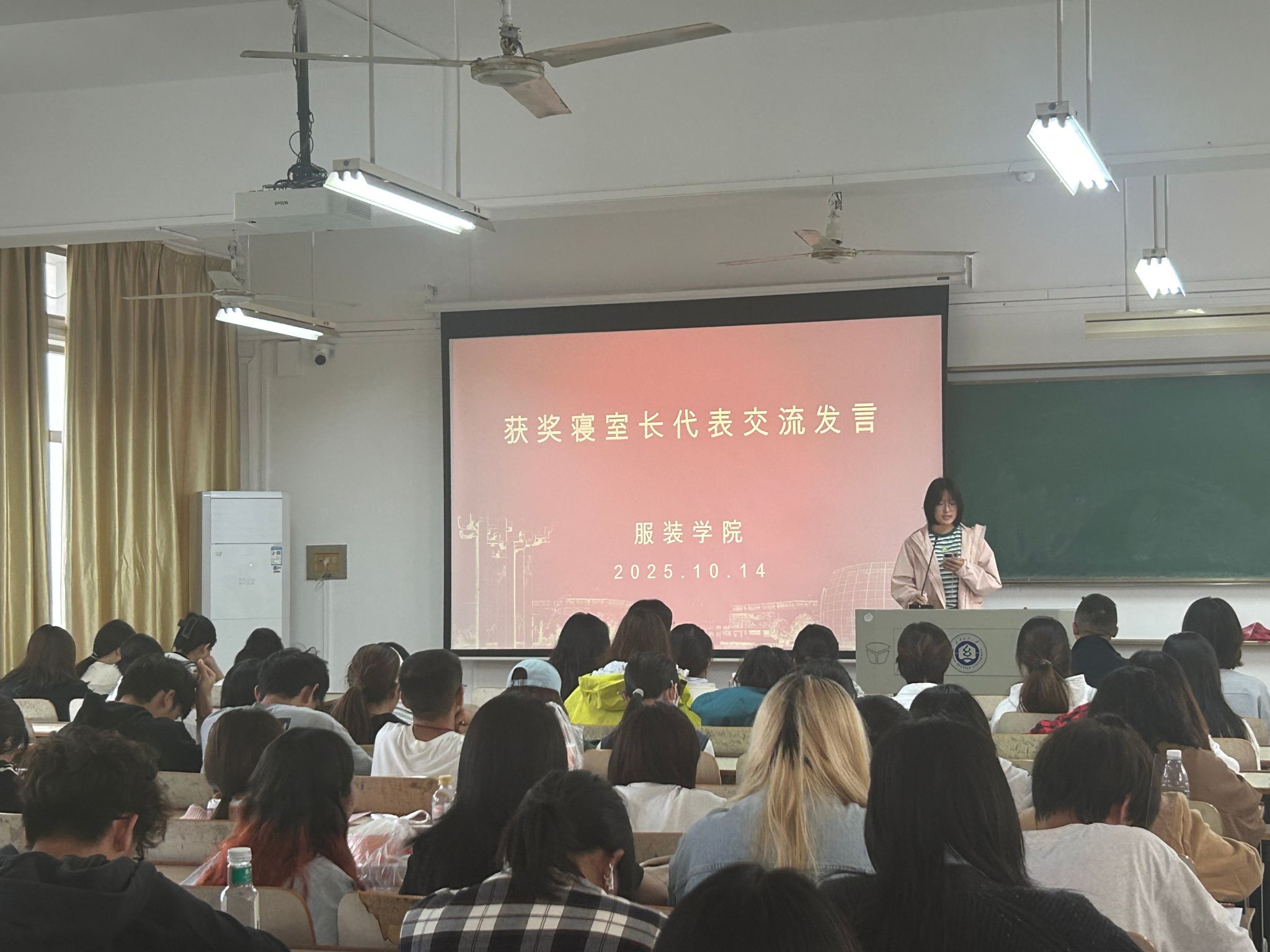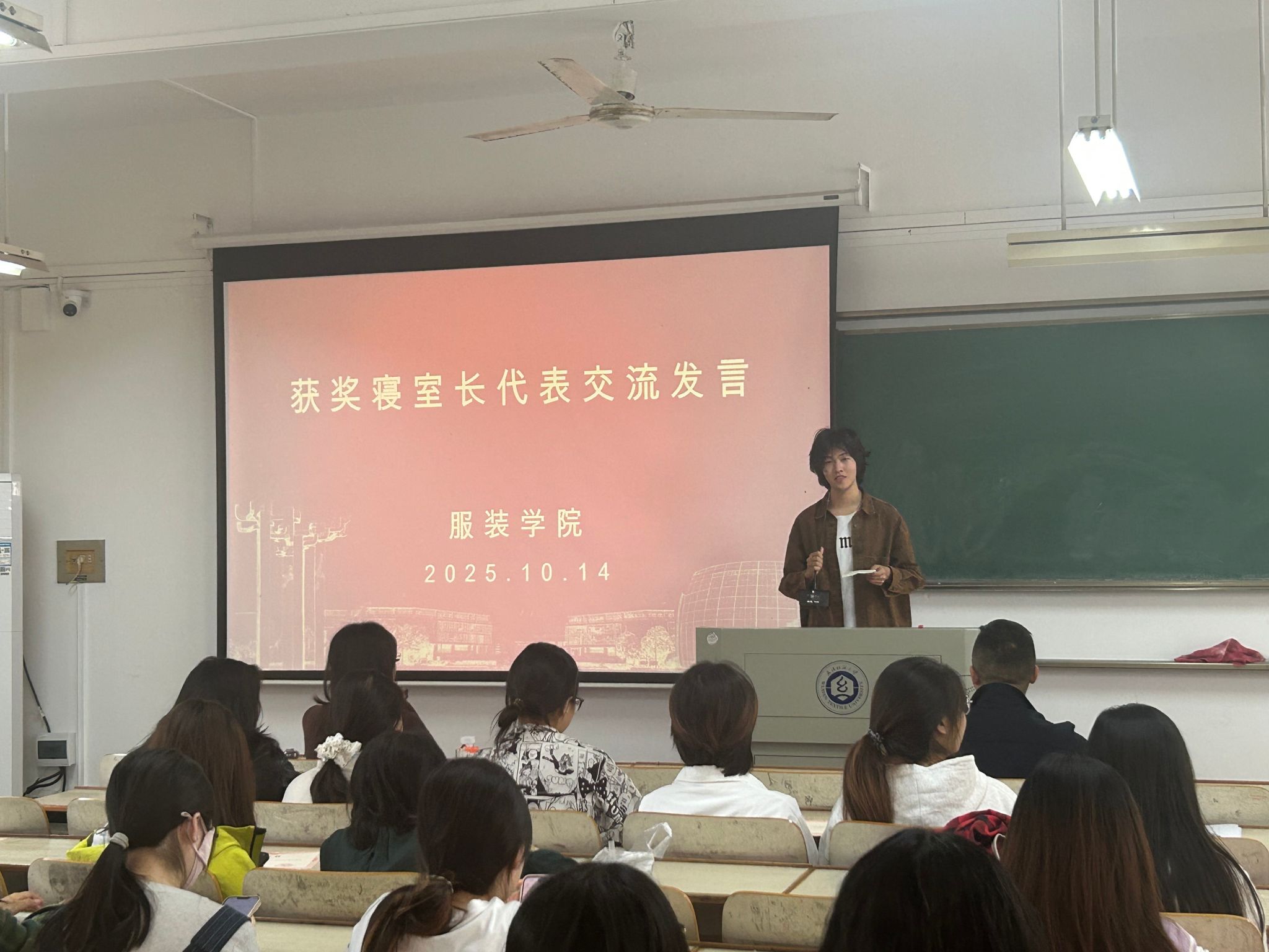 随后,文明宿舍寝室长代表贺子聪和创意宿舍寝室长代表彭雅歌依次进行交流发言。代表们分享了宿舍建设的经验、创意产生的过程以及在宿舍生活中的收获与成长,讲述了室友间相互鼓励,相互帮助的故事让在场同学深受启发,在接下来的寝室生活中共同进步。