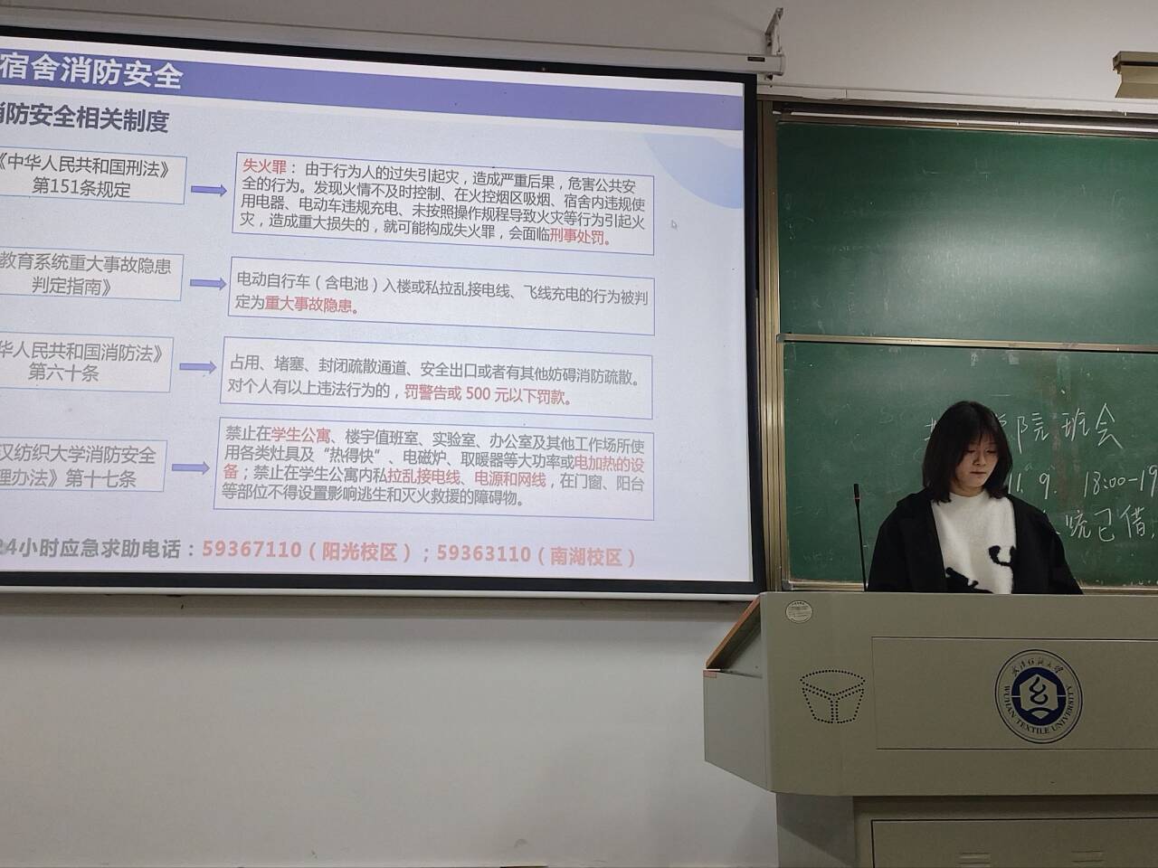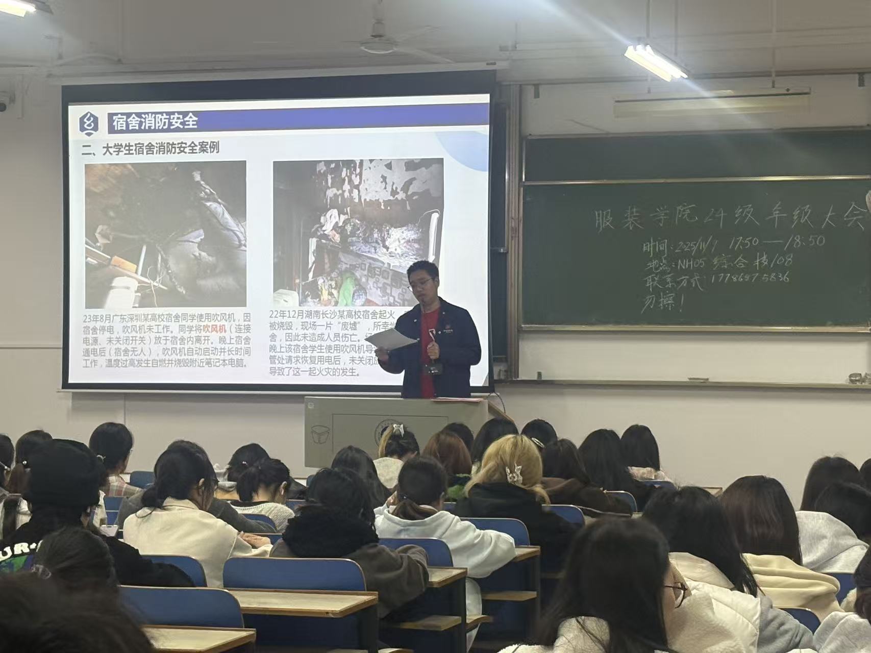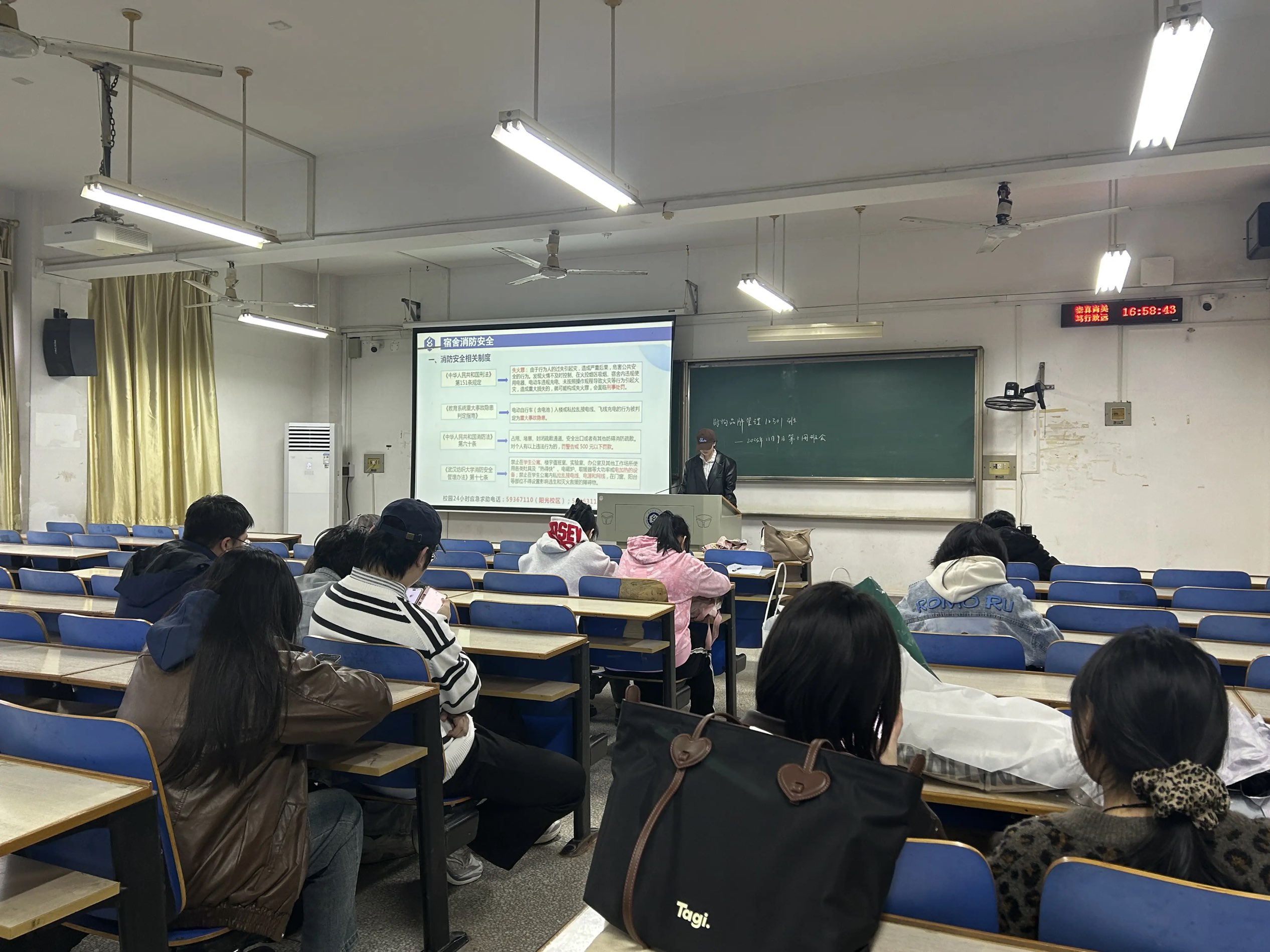 本周晚班会聚焦消防安全教育,各班通过专题讲解、案例剖析、互动交流等形式,组织员工系统学习消防安全相关法律法规,结合阳光校区一寝室火灾真实警示案例,深入分析火灾成因与危害,引导员工深刻汲取教训;同时,细致解读宿舍消防安全“十戒”具体要求,明确禁止使用大功率电器、私拉乱接电线等红线。各年级也具体通报了10月份院公检不合格寝室,辅导员、班主任现场重申整改标准,督促寝室长牵头对照宿舍管理细则逐项自查自纠,确保当日整改到位。