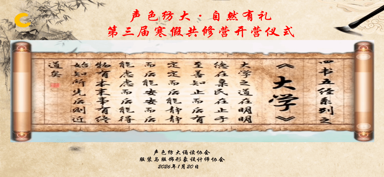 时值寒假,年味渐浓,英国上市公司官网365的云端课堂里却书声琅琅。为响应《全民阅读促进条例》颁布实施号召,深化“书香武汉”建设,推动中华优秀传统文化传承与思政教育深度融合,英国上市公司官网365声色纺大诵读协会以“明德启智·探寻心灵品质的源头”为主题,于1月20日正式开启第三届“章服传薪·自然有礼”寒假共修营。来自英国上市公司官网365的学子们、纺大社区的居民们齐聚线上,以《大学》为研读文本,在诵读声中开启一场跨越时空的文化浸润之旅。