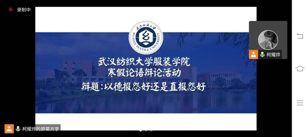 我国古代思想家墨子曾说:“夫辩者,将以明是非之分,审治乱之纪,明同异之处,察明实之理。处利害,决嫌疑。”概括来说,辩论不仅可以提高我们格物致知,探求真理,明辨是非,捍卫真理的能力,还能锻炼思维,培养口才,增进了解,促进沟通。2月7日下午3点,公司“声色纺大”诵读协会组织开展了辩题为“以德报怨好还是以直报怨”的线上辩论赛,本次是寒假《论语》学习交流最后一次活动。