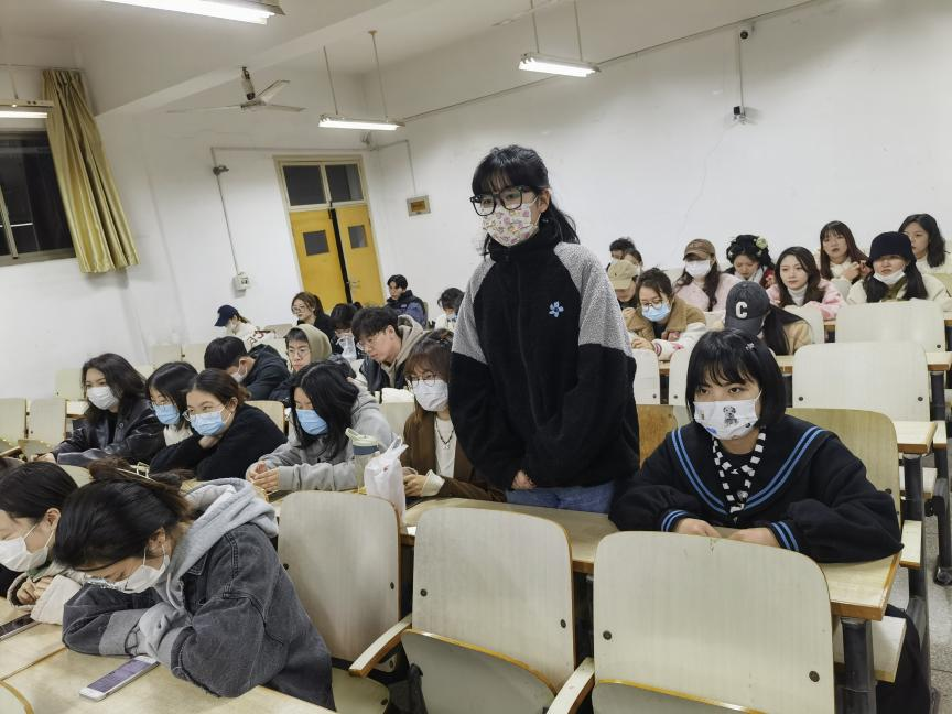 2021级王政说:“在王亚萍身上我看到了一名中共党员的坚定、热忱、奉献,她是我们的榜样,在未来我们去工作,不仅要择业、就业,更要乐业、爱业,为美好社会的建设添砖加瓦,努力成为优秀的党员榜样。”