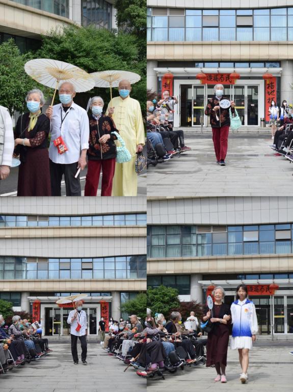 老人们佩戴自己制作的服饰、配饰,在表演专业志愿者的指导下开启一场别开生面的T台时装秀,重现青春。活动场面热闹,气氛温馨,志愿者专业的指导和热情的态度,得到了现场老人们的高度评价。