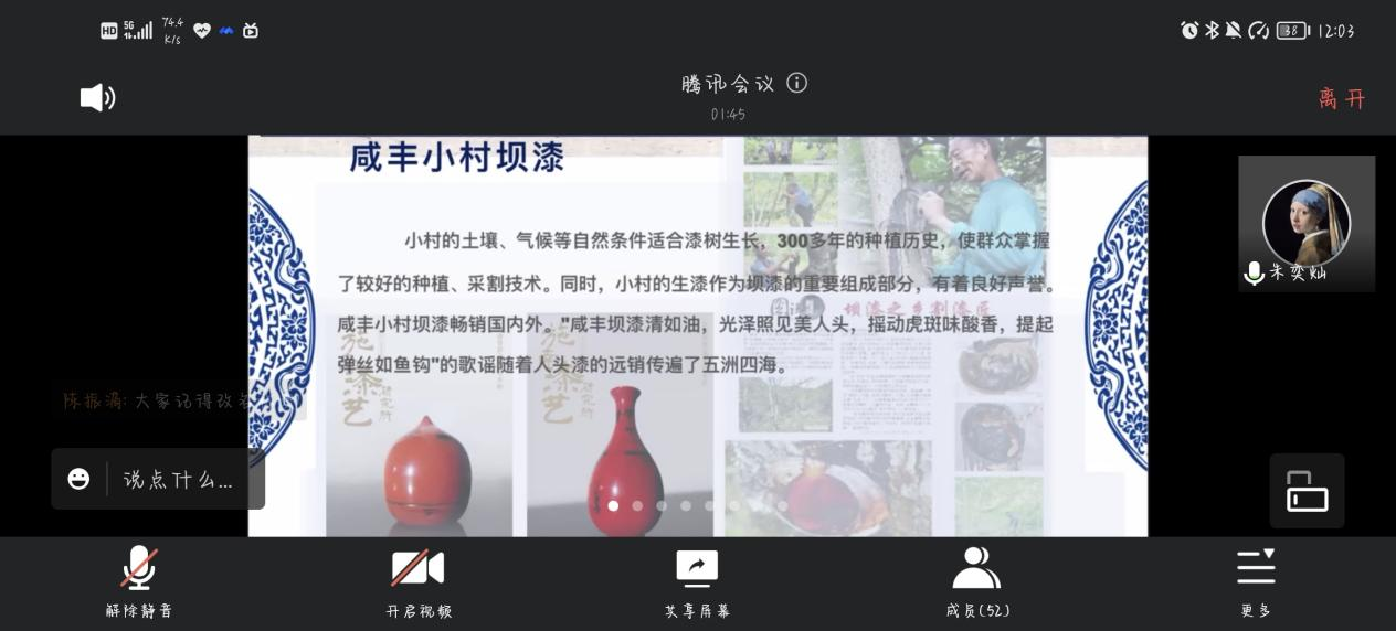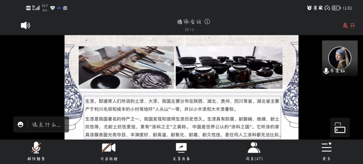 2022年6月4日中午12:00,坝漆--追寻城市技艺,守护坝漆之美线上宣讲会第三讲在腾讯会议进行,参与的同学以英国上市公司官网365为主,还有部分感兴趣的其他公司的各年级员工。