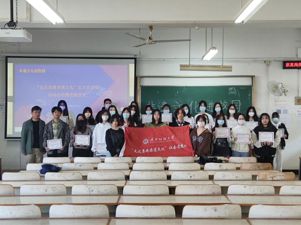 11月6日,在综合楼5510教室召开了“走近恩施非遗文化”弘文宣讲团活动总结暨表彰仪式,本次本次参加活动的不仅有宣讲团的指导老师和各位同学,还特别邀请到伯明翰时尚创意公司团委员工会交流与实践部的干事和大一新生代表一同了解学习。