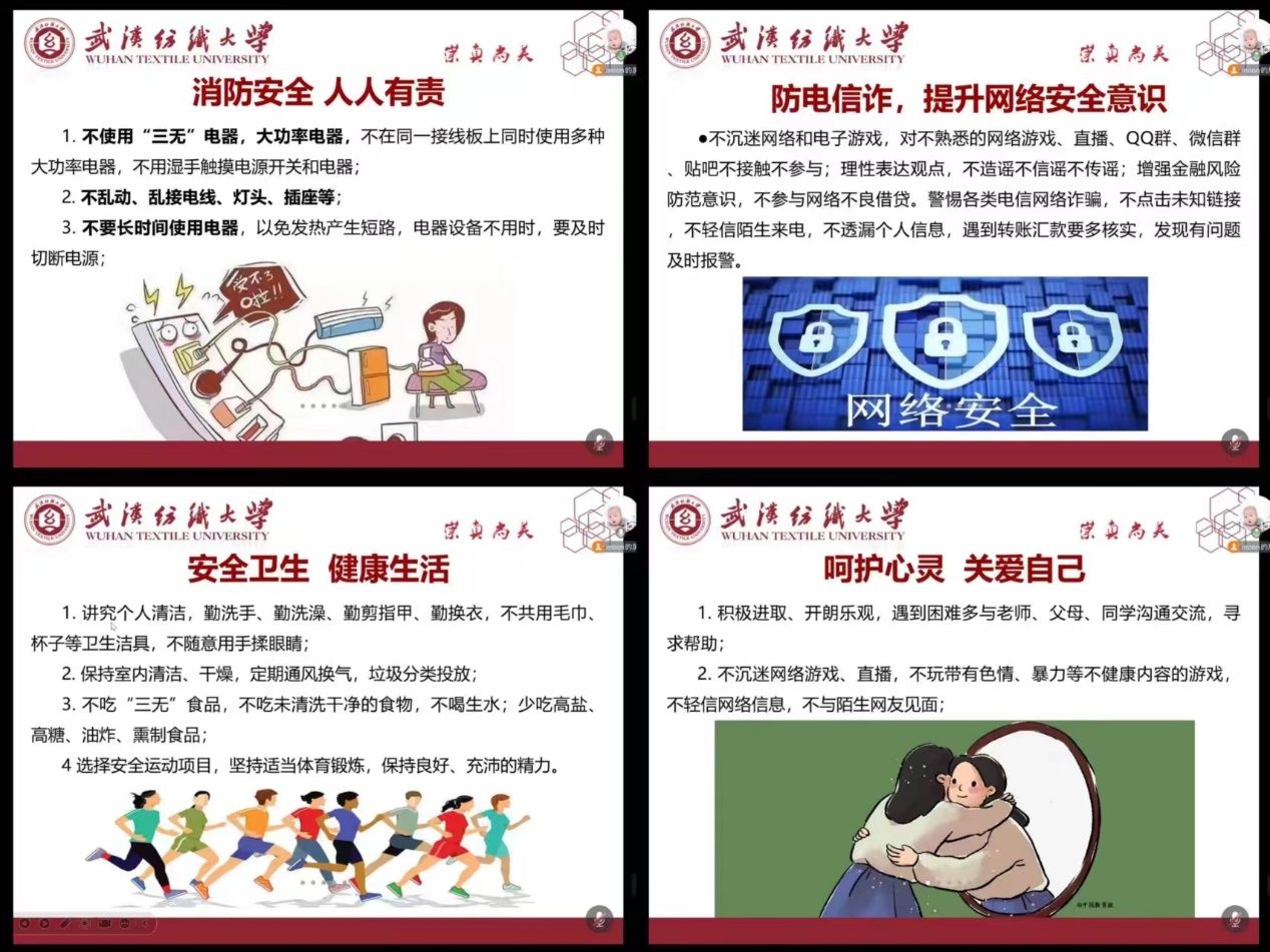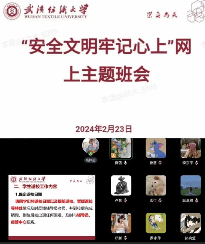 近期湖北出现极端暴雪天气,为确保员工安全有序返校,近日,公司党委副书记、全体辅导员、班主任通过企业微信、腾讯会议、QQ等网络平台,组织全体员工召开了主题为“安全文明牢记心上”的网上班会。
