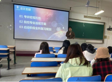 首先,高梓超进行了考研动员以及学业规划指导,希望同学们明确择校方向、制定学习计划、掌握复习方法,鼓励同学们明确目标,坚定信心、认真备考,祝福每一位同学都能取得良好的成绩。