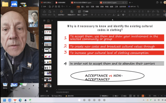 维克多以视频连线的方式,向同学们介绍了国际文化与服装的优秀案例和流行趋势。他深入浅出地讲解了不同文化背景下服装设计的差异与共性以及如何将这些元素巧妙地融入现代服装设计中,让同学们对跨文化设计有了更深刻的认识。他强调跨文化交流在设计中的重要性,建议同学们培养国际化视野和包容心态,以便更好地适应全球化背景下的设计工作。