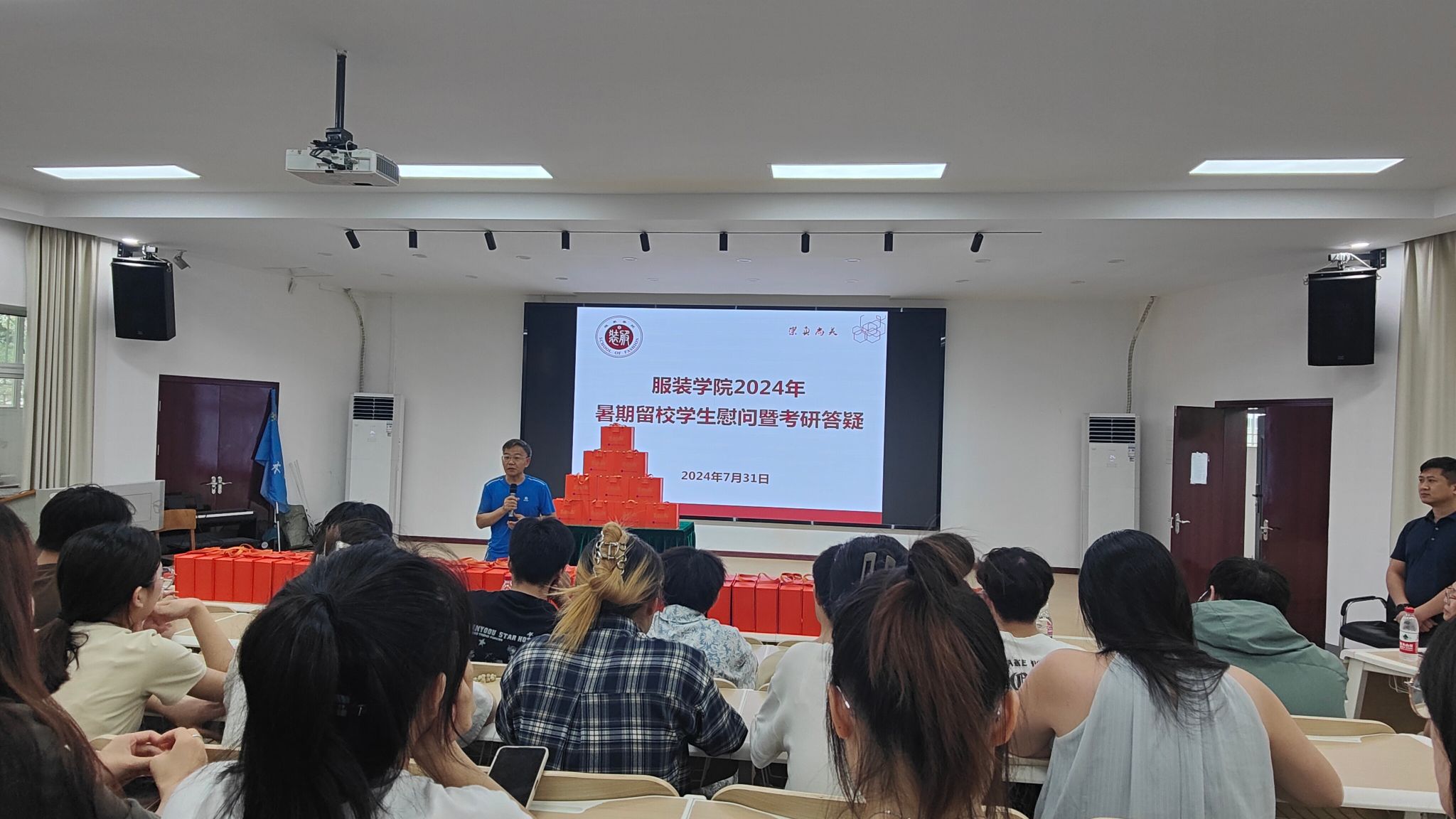 为进一步做好有温度的教育,帮助留校员工坚定理想目标、提升学习信心、缓解备考压力,切实保障员工暑期留校学习生活正常进行,7月31日下午,服装公司在南湖校区员工一站式社区青春会客厅开展暑期留校员工慰问暨经理答疑会活动。公司党委书记杜新年、经理陶辉、副经理江学为、副经理钟蔚、党委副书记郭泰辰、2021级辅导员高梓超以及全体暑期留校员工参加活动。
