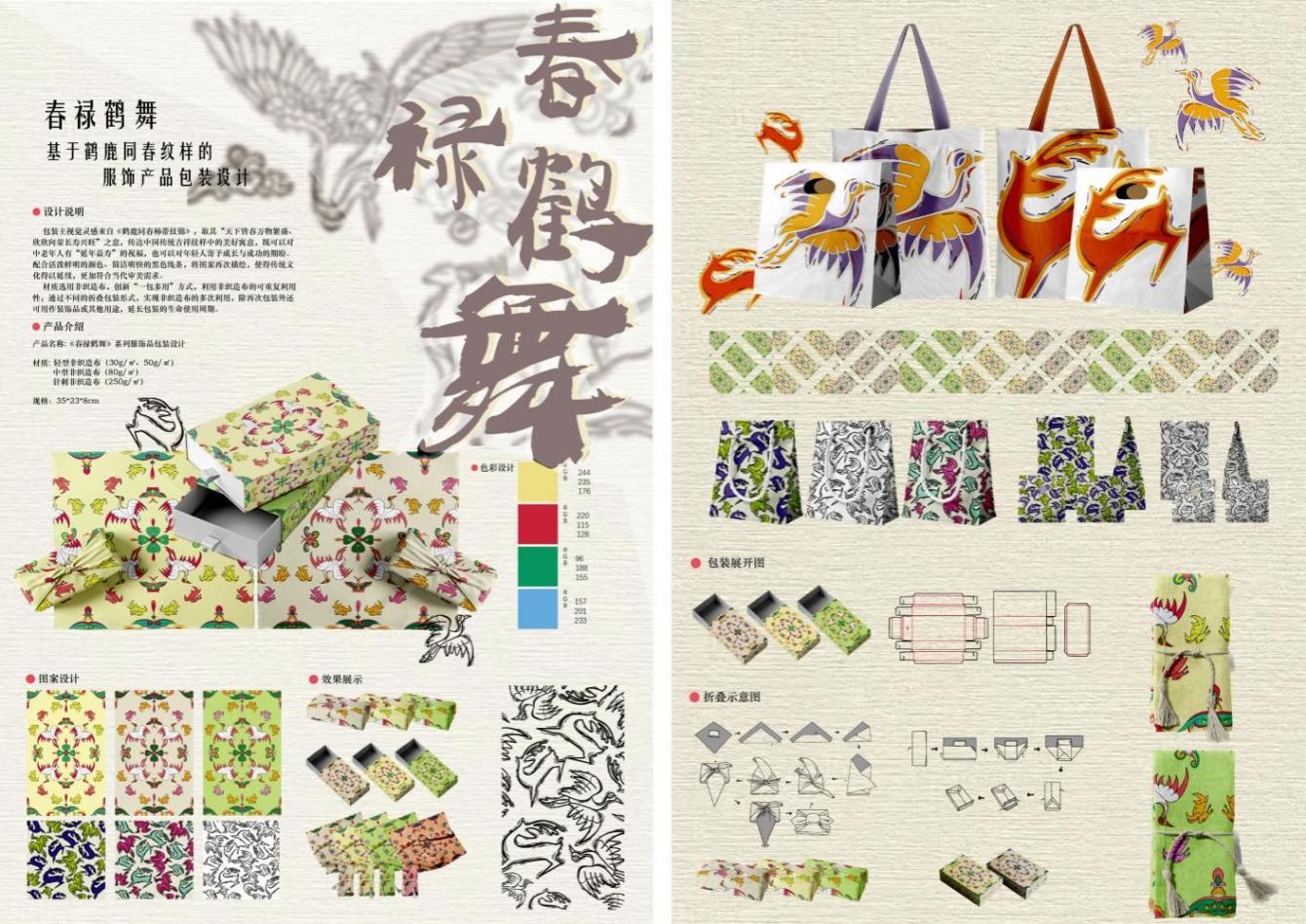 7月10至8月25日,“无为不织”团队受邀参与全国产业用纺织品行业协会非织造布流行趋势发布设计方案工作,接到邀请后,在团队指导教师钟蔚教授的指导下,成员们先对国内非织造布包装设计产业现状进行了广泛调研,后通过多次线上线下讨论,确定了以研发非织造布的服用、包装等性能为核心的设计理念,以贯彻“绿色、环保、创新”理念,落实“双碳”战略,挖掘新质生产力为宗旨,设计开发出《山野拾趣》、《春禄鹤舞》、《益·周》三个系列产品并成功入选尚有可循——华昊·中国非织包装流行趋势2025/2026,作品将代表公司在9月初上海举办的产交会上正式发布。