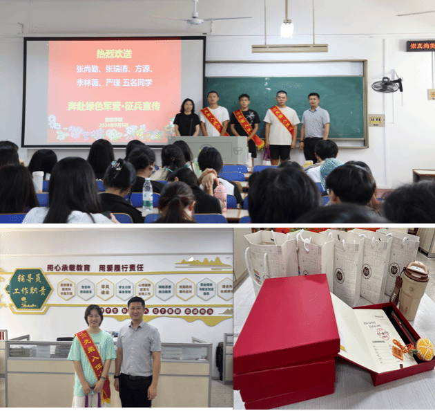 随后,郭泰辰发表了深情寄语和对在校同学参军动员。他指出,入伍是每位青年学子成长道路上的重要选择,它不仅是对个人意志和品质的锤炼,更是对国家和民族责任的承担。“在军营这个大熔炉里,你们将学会忠诚、勇敢、担当,这些品质将伴随你们一生。”勉励参军同学在部队发扬有担当、艰苦奋斗的精神,为自己、为家庭、为公司争光。他结合公司退役士兵复学后的表现和考研、就业等方面取得的成绩,进一步宣讲了国家出台的一系列优惠政策,鼓励同学们响应号召,积极报名参军,为保家卫国贡献自己的一份力量。