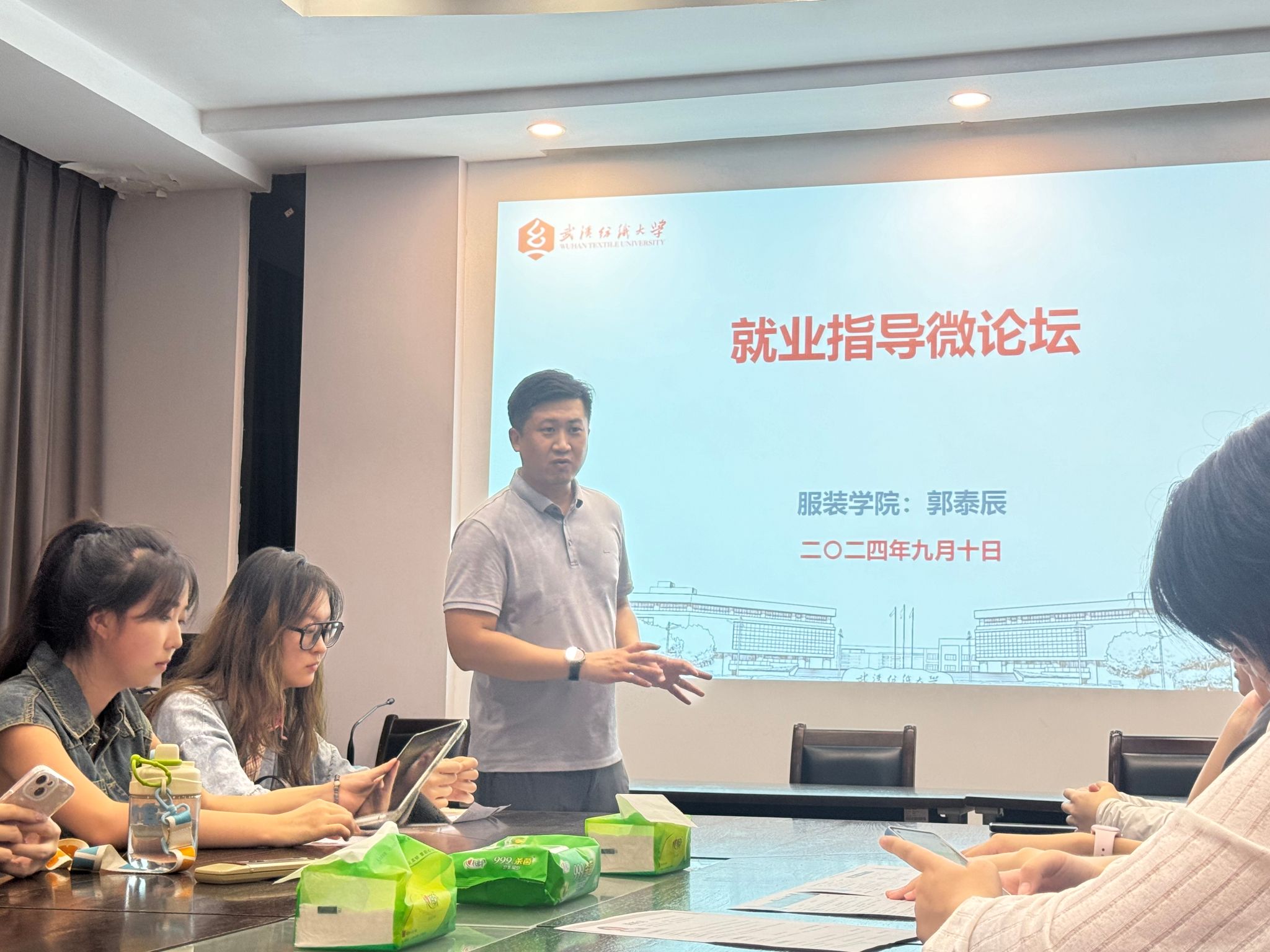 郭泰辰副书记首先为同学们讲述了当前老员工的就业形势,帮助同学们了解自己所学专业及其就业前景,他相信同学们能合理规划,找准方向,取得令自己满意的成就。