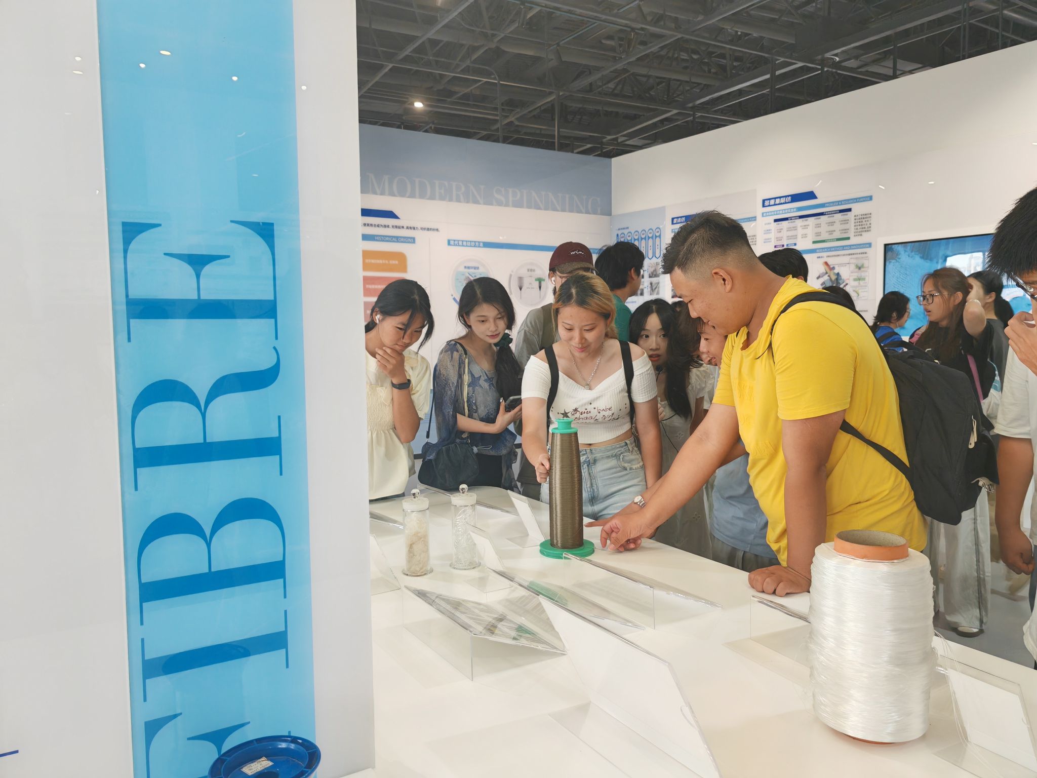 在科技馆内,新生们通过六个主题板块——“纺织缘”、“传统纺织”、“现代纺织”、“大纺织”、“超纺织”及“未来纺织”,系统地了解了纺织技术的发展历程和广泛应用。从古老的纺织工具到现代的智能设备,从传统的手工技艺到前沿的科技成果,每一样展品都深深吸引着他们的目光。