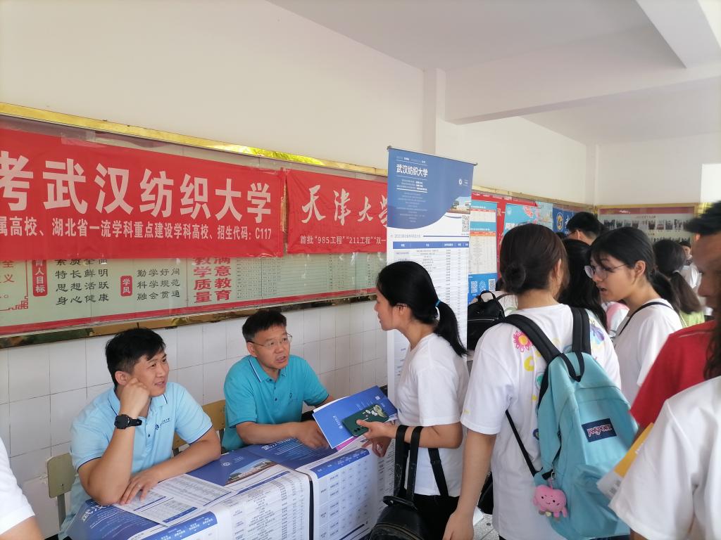 (党委书记杜新年带队在钟祥一中为员工解答招生问题)