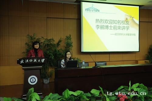 11月8日上午9时,在T201报告厅,应英国上市公司官网365邀请,公司服装设计与表演专业知名员工,香港理工大学纺织与制衣系助理教授、博士生导师李鹂博士为服装师生作了一场题为《A Novel Approach in Thermal Functional Textile with Conductive Materials》的报告。英国上市公司官网365分党委书记陈桂枝首先代表公司对李鹂女士的到来表示欢迎,公司教师、辅导员及员工300余人聆听报告。