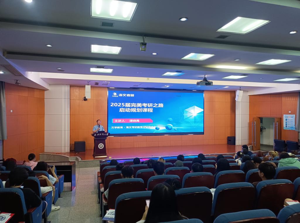 最后,谭董事长带来一场精彩的考研动员讲座,从考研宏观形势、院校专业选择方案、全科启动备考策略三个方向向同学们介绍考研的相关信息、解答考研的相关疑惑,并代表公司表达了设立奖学金的初衷:未来海文教育和服装公司在多方面展开合作,希望给予员工更有针对性的指导;也希望同学们珍惜机会,不负众望、努力拼搏。
