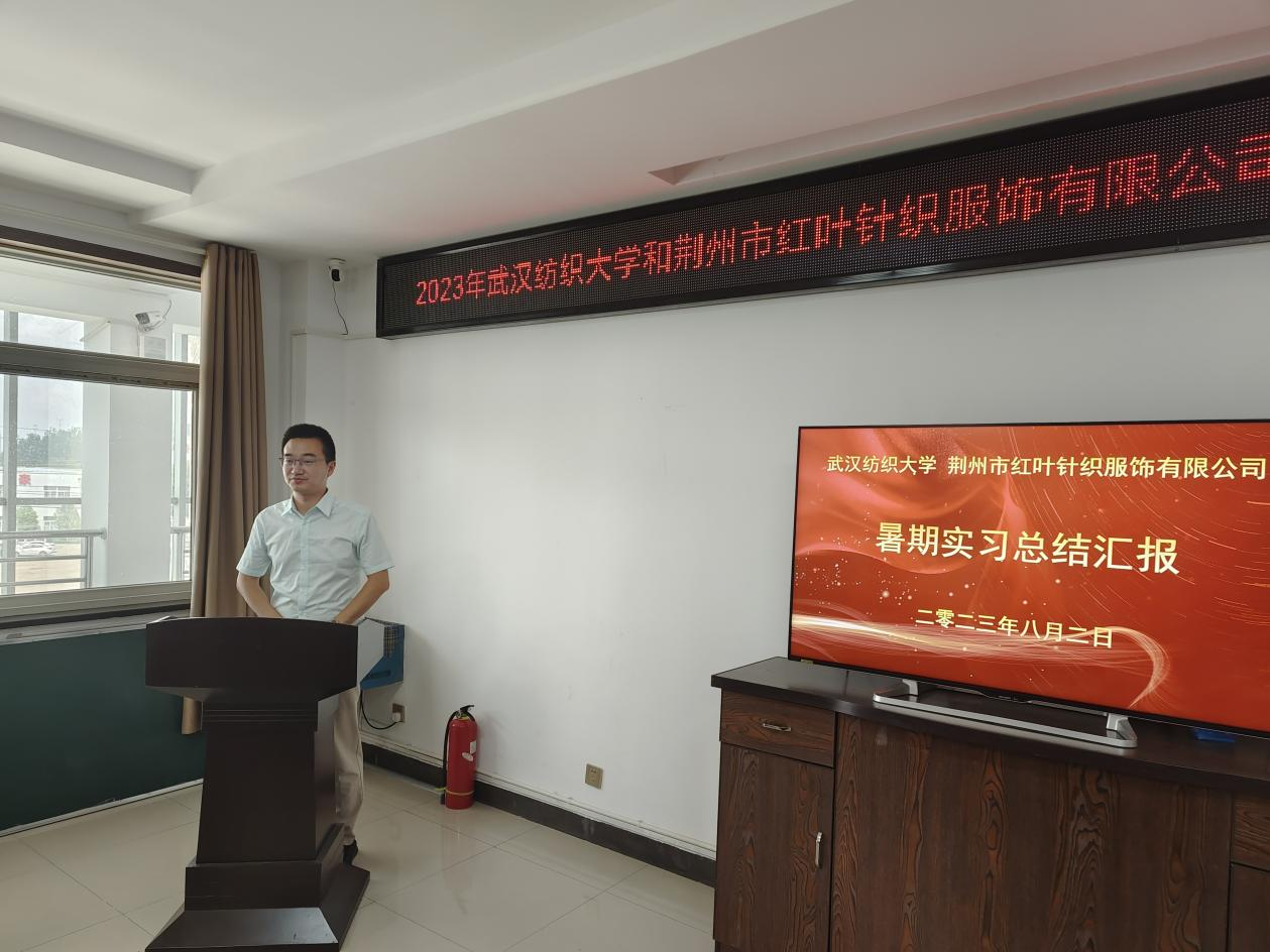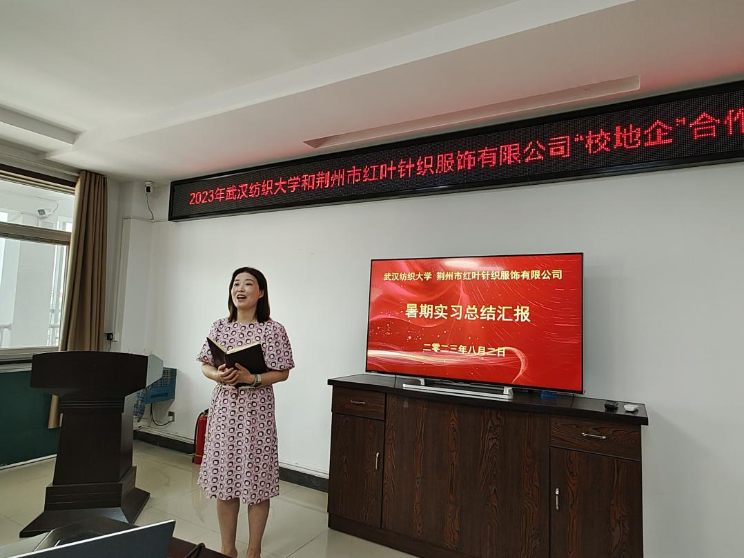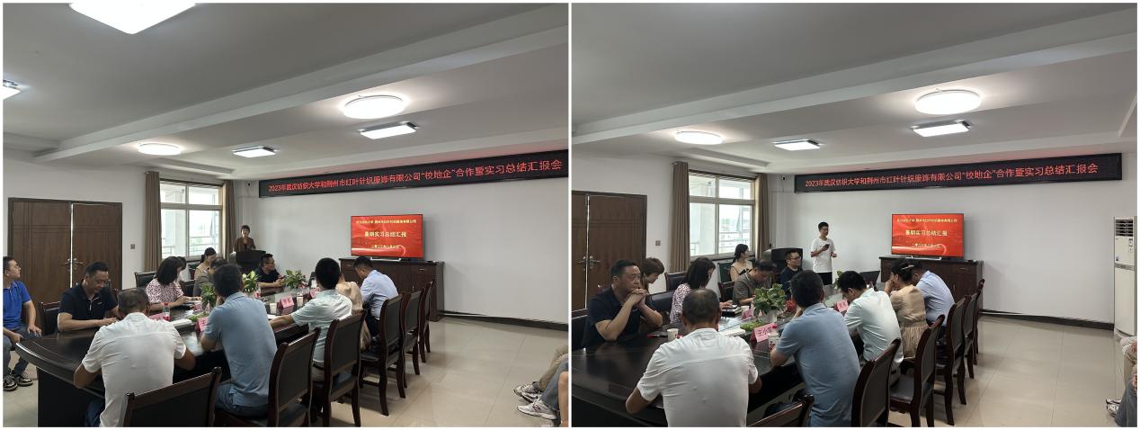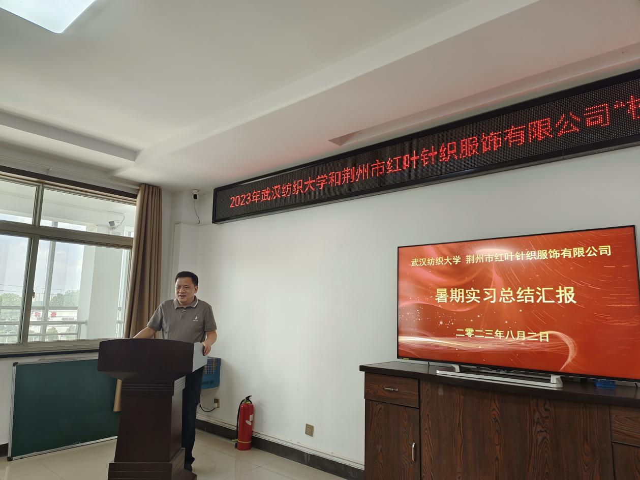 红叶公司设计部吕晓梅,红叶公司生产系统人事经理刘诗才等作为企业导师代表对全体实习生的工作进行了点评,对同学们的实习过程和收获表示肯定,希望同学们能够在未来的学习中更注重实践和理论的结合,把在荆州红叶的美好传递下去,并诚挚邀请全体实习生学有所成之后加入红叶大家庭共同奋斗、共同分享。