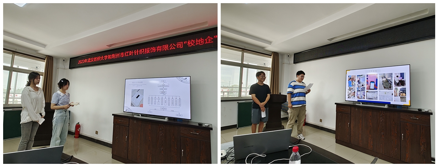 会上,参与实习的本科生和研究生通过PPT展演的方式,重点针对实习目的、实习内容和收获等方面,图文并茂、感情充沛地表达了实习的收获、感受和思考,全面展现了服装学子良好的精神风貌。在汇报中,同学们纷纷表示,近一个月的实习,让自己对以前所学的专业知识有了全新认识和思考,学到了很多书本外的知识,感受到了荆州红叶传播大爱的企业关怀、精益求精的企业精神和奋斗不止的企业追求,非常感谢公司和企业提供的实践平台,感谢荆州红叶的关爱和照顾,也希望自己在未来能够在新的方向上收获更多的成长。