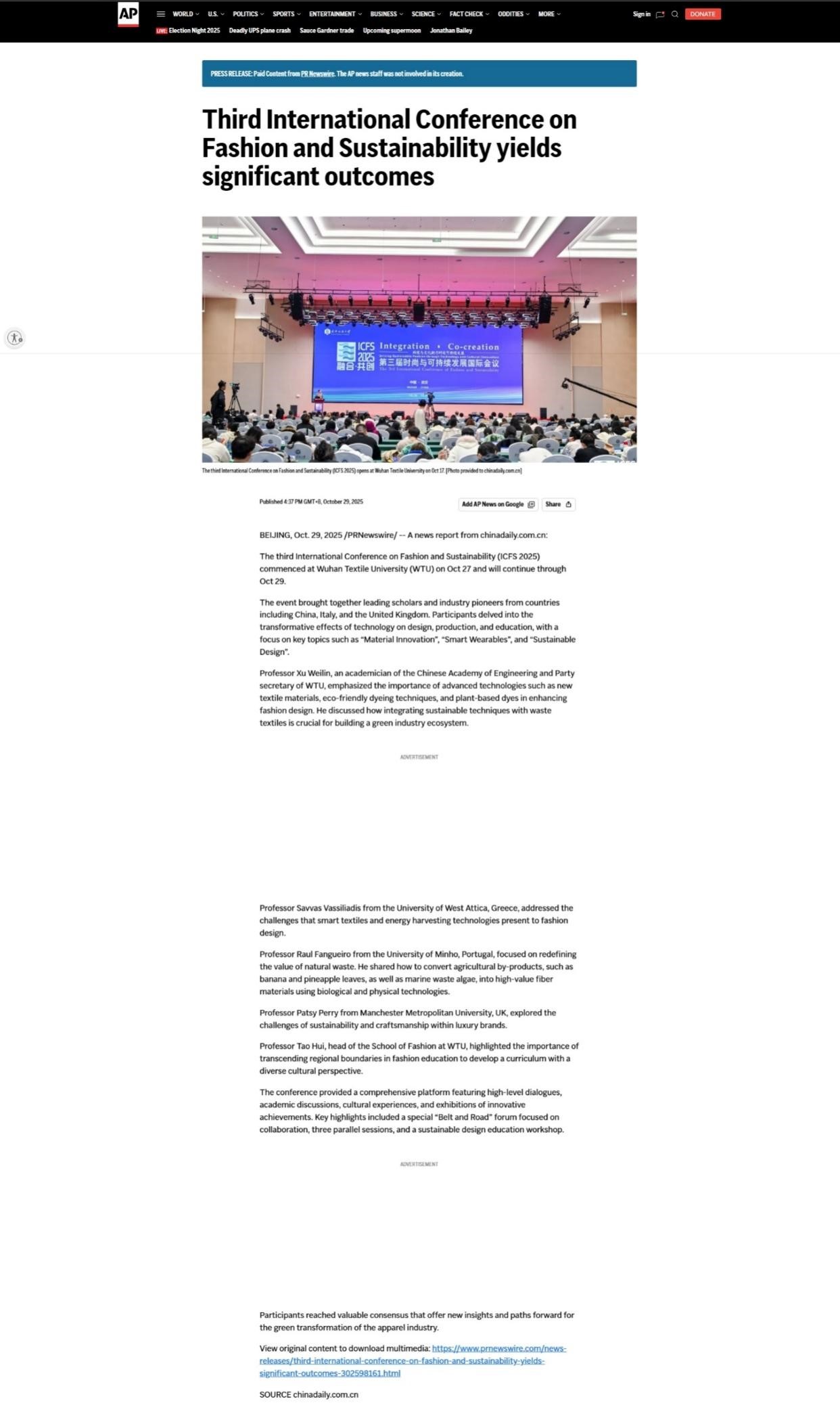 https://apnews.com/press-release/pr-newswire/third-international-conference-on-fashion-and-sustainability-yields-significant-outcomes-ba50326fa39b709cc7aaf5b4e23156fa