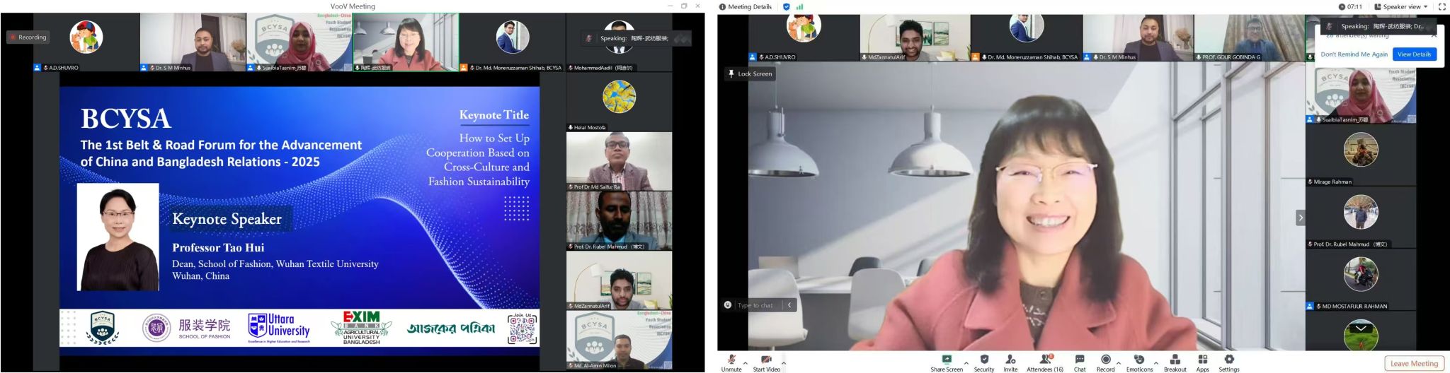 On the evening of February 8th, the ‘1st Belt and Road Forum for the Advancement of China-Bangladesh Relations-2025’ was conducted on the Tencent online platform. The theme of the forum was ‘Fostering Cooperation between China and Bangladesh.’ Professor Tao Hui was specially invited to deliver a keynote speech, and she focused on ‘how to set up cooperation based on cross-culture and fashion sustainability.’ The School of Fashion at Wuhan Textile University is the institutional supporter of the forum as it focuses on the Belt and Road countries’ educational development.