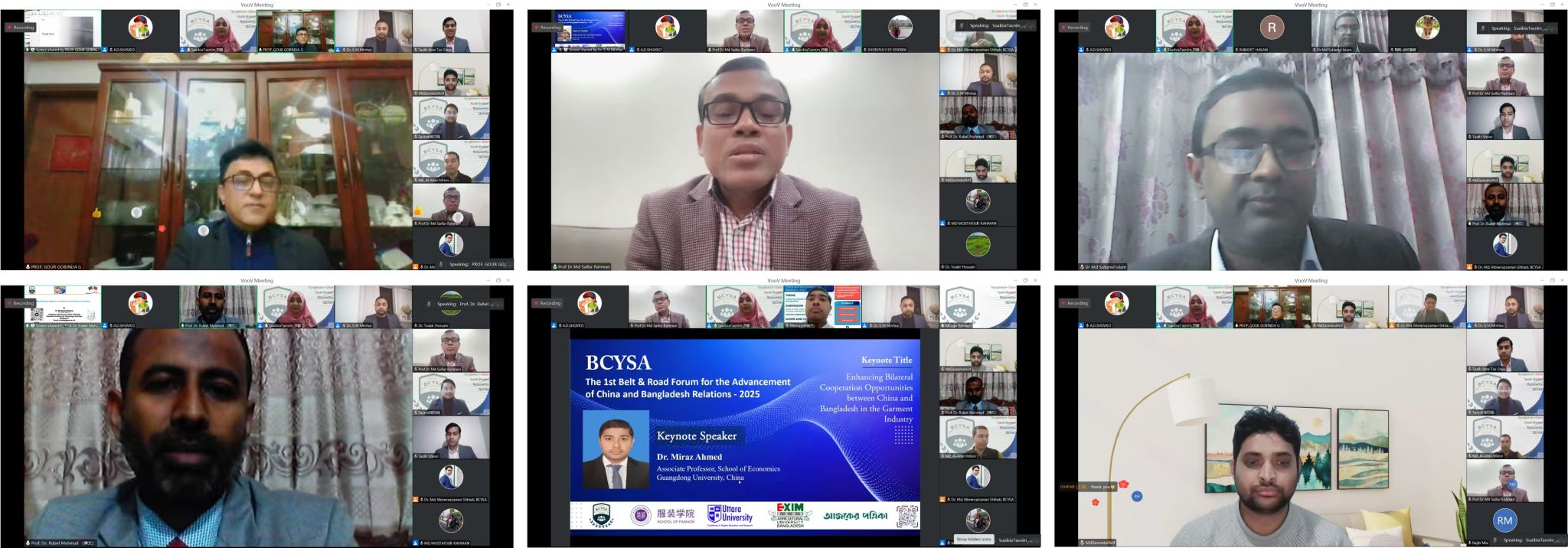 In this forum, to get new ideas and broaden perspectives, six professors from Chinese and Bangladeshi universities served as keynote speakers alongside six outstanding Bangladeshi scholars associated with Chinese universities, who presented their innovative proposals for developing the relations between both countries. Professor Tao Hui, along with Professor Dr. Gour Gobinda Goswami, Pro Vice-Chancellor of Uttara University; Professor Saifur Rahman, an independent textile education expert from Bangladesh; Professor Md. Rubel Mahmud from Patuakhali Science and Technology University, Bangladesh; Dr. Md. Sultanul Islam from Uttara University, Bangladesh; Dr. Miraz Ahmed from the School of Economics at Guangdong University in China; and BCYSA president Md. Zannatul Arif shared their insights to promote cooperation. Fostering cooperation between China and Bangladesh serves as a collaborative pathway for sustainable growth and innovation. The primary goal of this forum is to facilitate knowledge exchange, encourage collaboration, and explore innovative solutions to strengthen the relationship between China and Bangladesh.