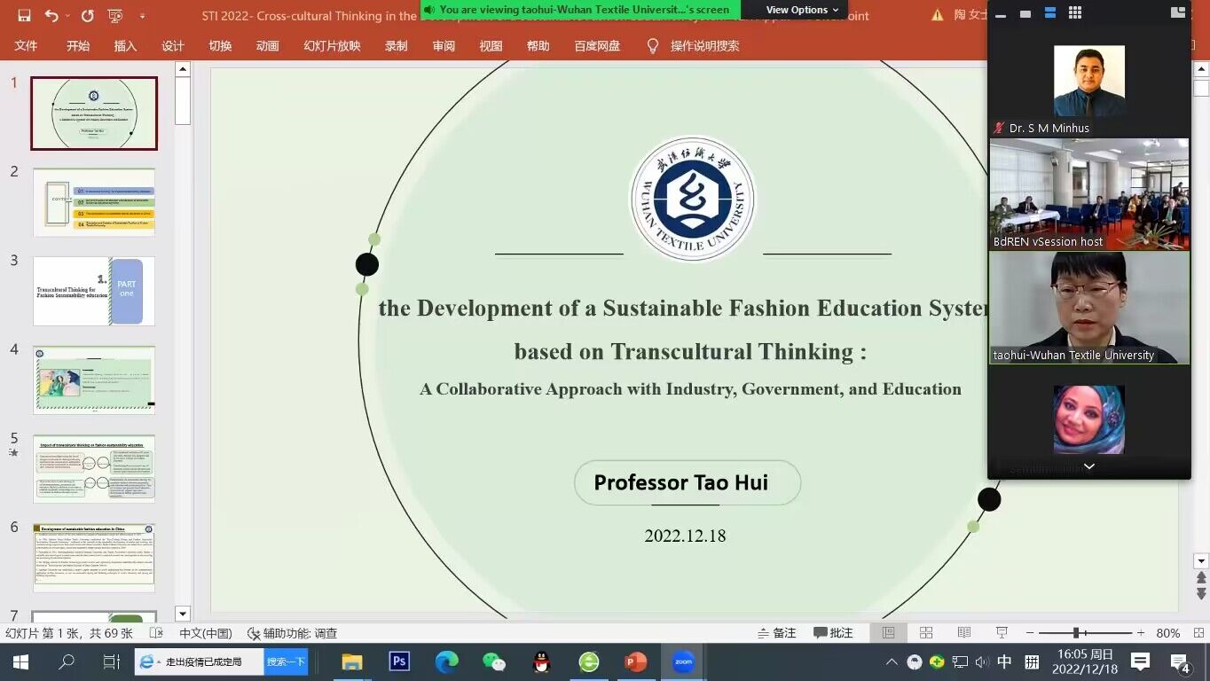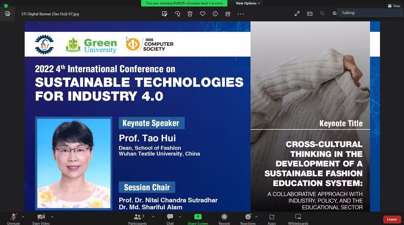 On the afternoon of December 18th, Professor Tao Hui was invited to deliver a keynote speech entitled "Cross-cultural Thinking in the Development of a Sustainable Fashion Education System" at the "4th International Conference on Sustainable Technologies for Industry 4.0 – STI 2022".
