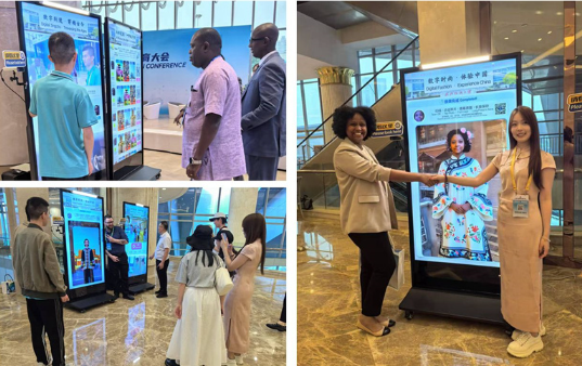 “智绘云裳”体验区,嘉宾们只需站在屏幕前,面对摄像头,AI系统便会快速捕捉头像特征,通过先进的三维建模与场景融合技术,瞬间为嘉宾“换上”精美的汉服、旗袍等中国特色服饰,并将武汉东湖、黄鹤楼等标志性文化场景融入画面,生成极具特色的数字照片。