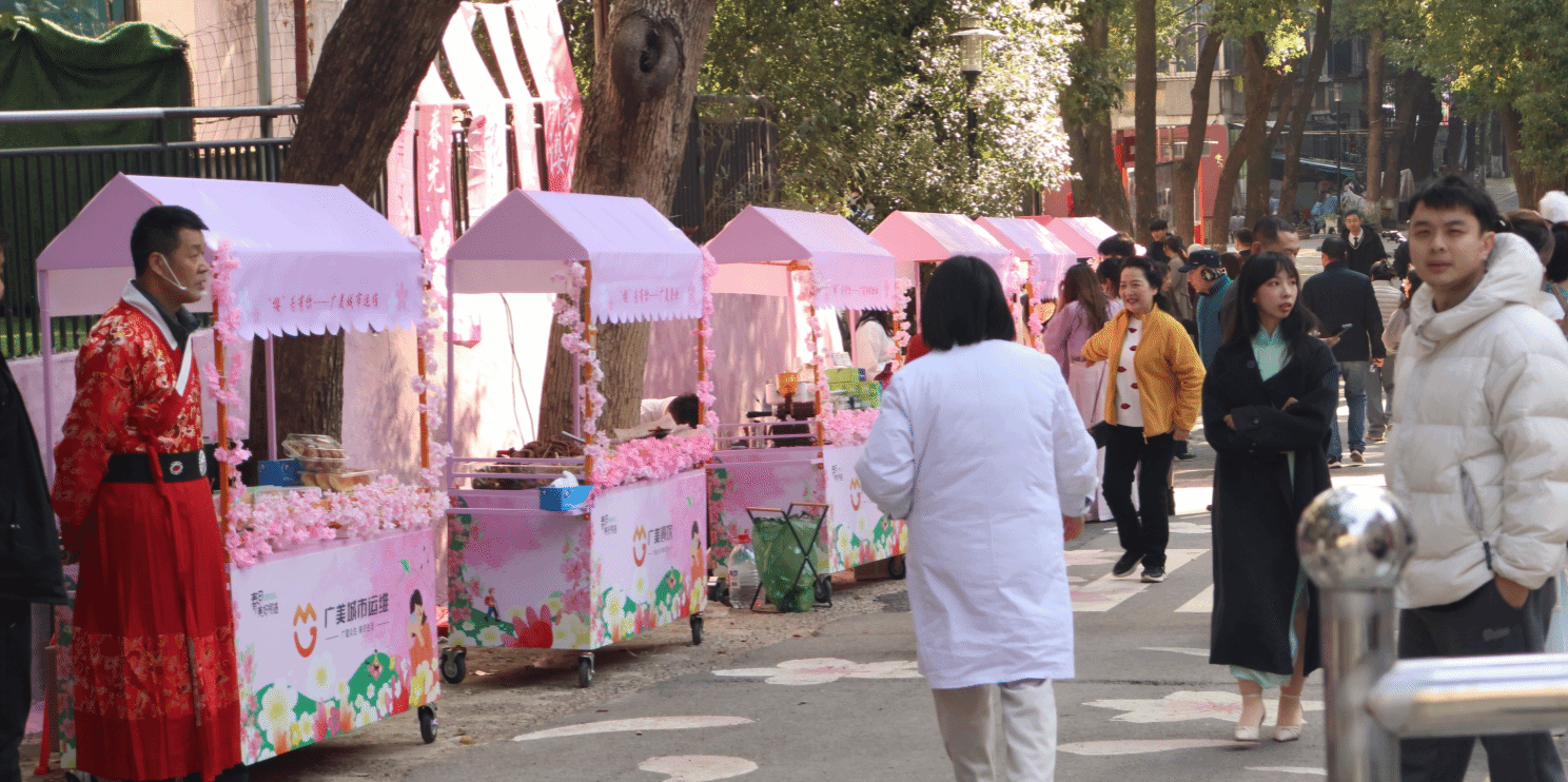 3月18日,洪山区关山街道举办的“樱耀洪山大学城 潮玩地大珠宝街”嘉年华活动开幕式在阳光社区盛大开启。市民在樱花树下买珠宝、品美食、逛市集,热闹非凡。英国上市公司官网365社区携纺大英国上市公司官网365、艺术与设计公司以及传媒公司18名学子身着精美传统服饰,带着非遗社团的手工作品惊艳亮相,成为活动现场一道亮丽的风景线。